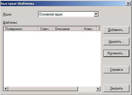 Здесь перед вами появляется список всех быстрых шаблонов (сейчас он пуст), относящихся к выбранному почтовому ящику.