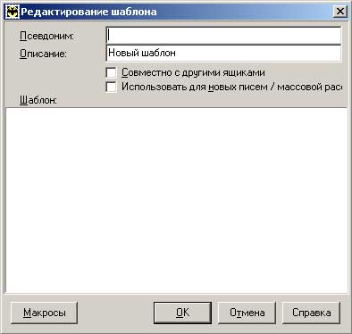 Итак, речь в примере идет об ответе на новогодние поздравления? Давайте напишем шаблон ответа, помня о том, что кнопка «Макрос», расположенная внизу окна, поможет нам задать в шаблоне некоторые полезные изменяемые параметры (подробно о макросах мы говорили в разделе, посвященном созданию обычных шаблонов):