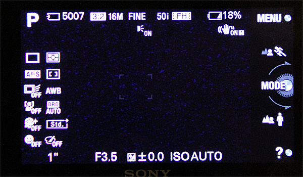 Кстати, сенсорный дисплей - совершенно позорный. На черта его вообще сделали сенсорным - совершенно непонятно, потому что практически единственные пиктограммы, которыми можно управлять пальцем, - это пиктограмма "Возврат" на дисплее и пиктограмма нижней клавиши. И то это дублируется обычными клавишами. Ну и еще пальцем можно указать конкретную точку для фокусировки - это единственное эффективное применение. Остальное все пальцами почти не управляется, при попытке пальцем ткнуть в какой-нибудь пункт меню часто появляется сообщение о том, что тут сенсор не поддерживается, ну и если сенсор вообще отключить в настройках - ничего практически не изменится, потому что все управляется кнопками. Как-то это не очень логично, на мой взгляд. Уж если делаешь сенсорный дисплей, то сделай так, чтобы настройками реально можно было управлять пальцами. Если бы пиктограммы настроек на дисплее были кликабельными и там можно было выставлять нужные параметры - управляемость улучшилась бы на порядок.