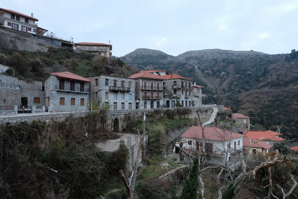 Городок в горах, сумерки.