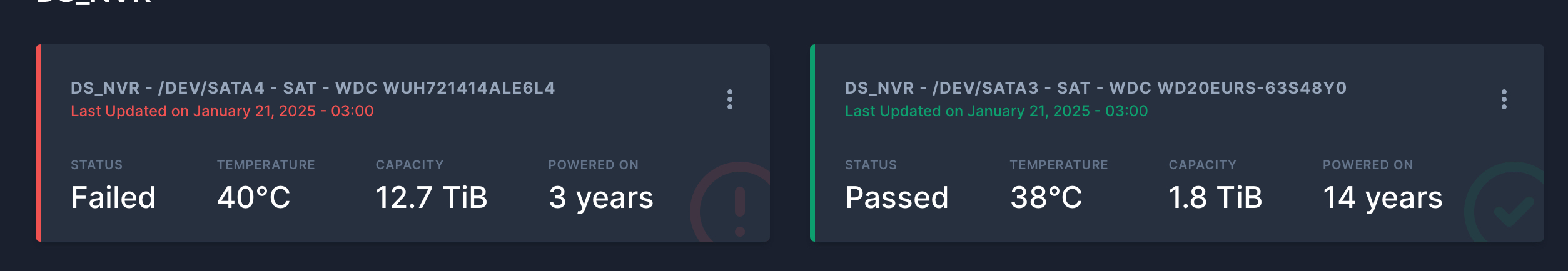Воткнул этот диск в Synology, SMART-тест которого кратко отрапортовал, что всё ОК. Надо сказать, что с недавних пор Синолоджи убрали показ атрибутов СМАРТ из своей утилиты (видимо, неадекватные пользователи задалбывали их техподдержку своими интерпретациями этих атрибутов).