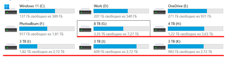 Ну и все, теперь у меня есть пять дисков для бэкапов в одном корпусе, где диски не будут сильно пылиться.