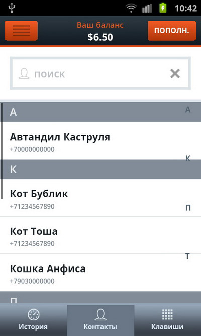 С исходящим звонком чуть хитрее: там на очень короткое время требуется Интернет для того, чтобы сделать запрос для обратного вызова (так называемый Call Back). То есть вы выбираете номер абонента, делаете вызов. Трубка при этом положена. Через пару-тройку секунд вам придет входящий вызов от этого абонента. Вы поднимаете трубку и слышите в ней длинные гудки вызова абонента. После этого он снимает трубку - и идет обычный разговор через GSM, Интернет при этом не требуется.