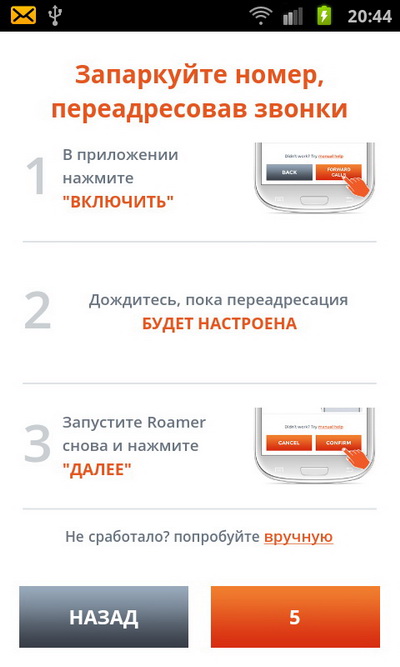 После запуска Roamer он обнаружит местную SIM-карту и привяжет к ней запаркованный российский номер - для этого очень ненадолго потребуется Интернет: Wi-Fi или просто мобильный Интернет этой SIM-карты.