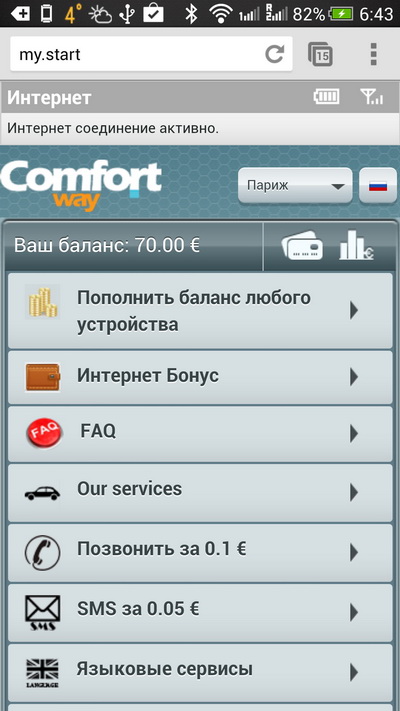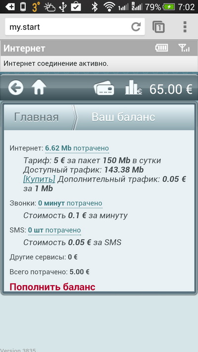 В меню Comfortway, разумеется, есть ваш баланс: при этом можно посмотреть статистику по поводу того, сколько мегабайт вы потратили из ежедневного 150-мегабайтного пакета.