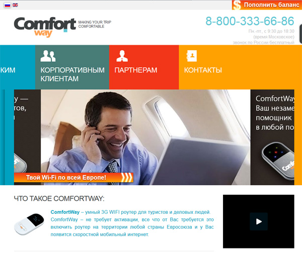 Некоторое время назад со мной связались люди из компании Comfortway и предложили потестировать их устройство, которое представляет собой компактный беспроводной маршрутизатор (3G-роутер с WiFi) с зашитой внутри симкартой, позволяющее выходить в Сеть во всех странах Евросоюза. Причем стоит это всего 5 евро за 150 мегабайт, которые даются на сутки, а при необходимости можно докупить трафика по 0,05 евро за мегабайт. Самое при этом интересное заключается в том, что если устройство не используешь - деньги не взимаются. Как только один раз подключился - на текущие сутки списывается 5 евро, в которые включены 150 мегабайт. На мой взгляд, это более чем хорошо, особенно если будет нормально работать.