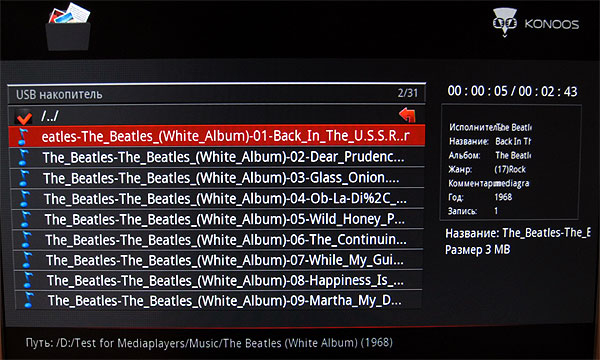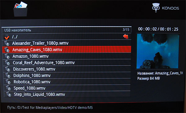 Еще нужно отметить, что на всех этих форматах выбирались аудиодорожки и субтитры, а также нормально работала перемотка, причем даже на MKV, где с этим делом обычно наблюдаются проблемы (плееры нередко показывают высокие значения скорости, а мотают реально максимум на 4х). Аудиодорожку DTS плеер поддерживает, а то у некоторых недорогих плееров с этим были сложности.