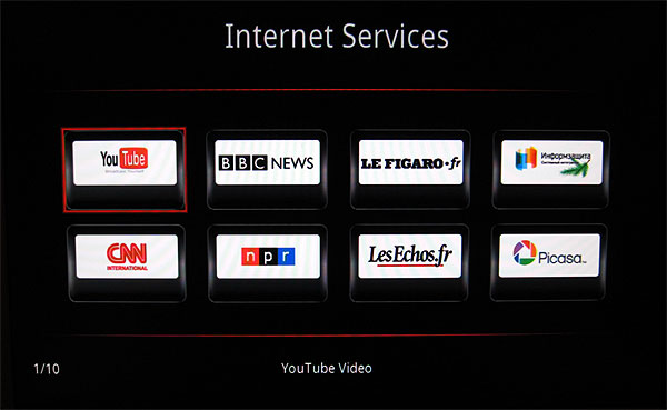 У плеера есть еще пара функций - это интернет-сервисы и интернет-радио. Интернет-сервисы - всякие новости, фотохостинги и видеохостинги.
