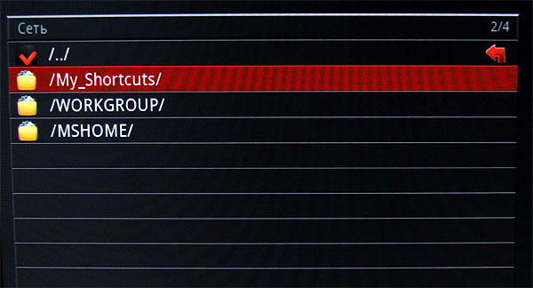 При наличии проводной сети плеер входит в локальную сеть и может подключаться к компьютерам рабочей группы. Логин и пароль при этом вводятся через экранную клавиатуру, и эти данные можно сохранить в виде ярлыка.