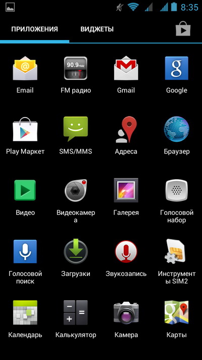 Набор установленных приложений.