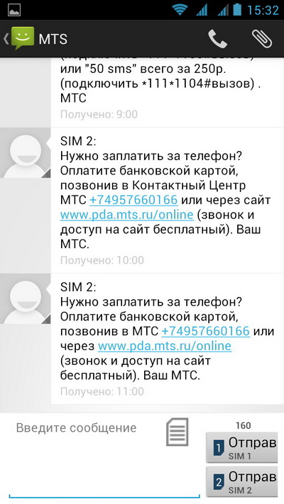 SMS/MMS. При отправке сообщения также можно выбрать, через какую сим-карту отправлять.