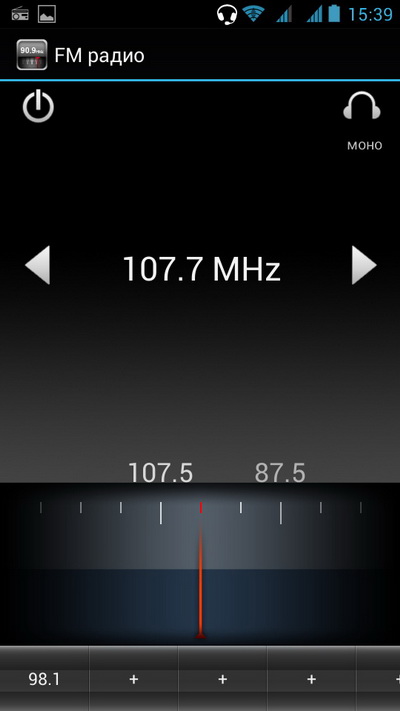 FM-радио. Использует наушники в качестве антенны.