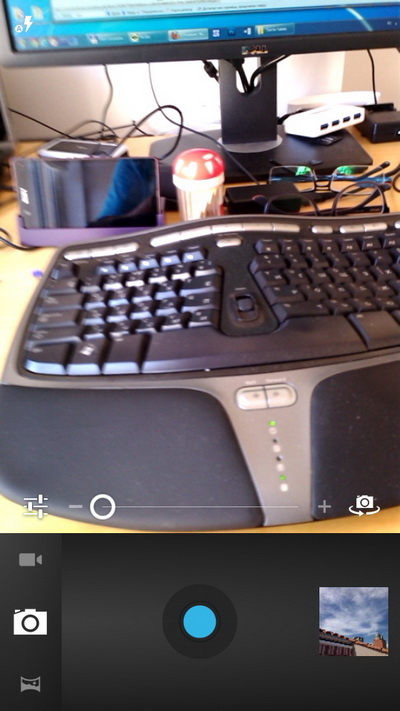Кроме того, сама камера очень медлительная и нечуткая. Она плохо реагирует на нажатие экранной кнопки, а когда реагирует - сначала пытается сфокусироваться, потом снимает, так что от нажатия кнопки до получения кадра проходит секунды две-три. Это очень много, оперативности здесь не будет как класса.