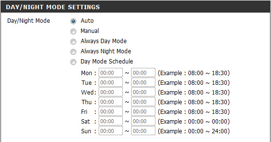 3. Устанавливать порог освещенности для перехода в режим «Ночь» (ночное видение) невозможно.