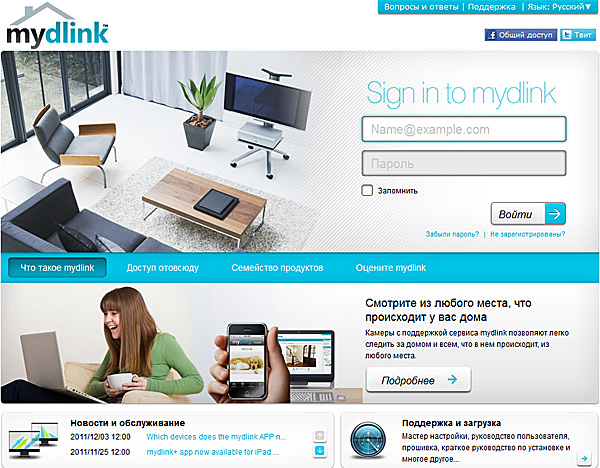 Что делать, если вам захочется посмотреть на то, что фиксирует камера, откуда-то издалека? Эта возможность тут также предусмотрена. Программное обеспечение камеры позволяет зарегистрироваться на сайте www.mydlink.com и подключить туда вашу камеру (до четырех для одного аккаунта). (Просто так на сайте зарегистрироваться не получится - только через софт какого-то устройства от DLink.)