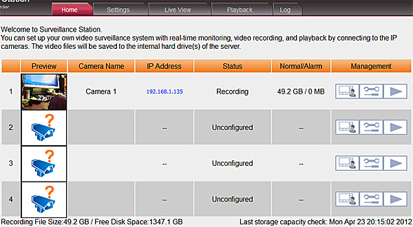 Однако один из вариантов решения - сетевой накопитель со встроенным сервером видеонаблюдений, как у меня. Я как раз хотел проверить, как оно все работает, - так вот, на мой взгляд, функционирует вполне прилично.