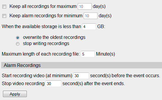При наличии же сервера видеонаблюдений (например, в NAS, как у меня, либо же с помощью программного обеспечения для домашнего компьютера) с помощью таких камер можно установить полноценный комплекс видеонаблюдения с записью и хранением данных с камер.