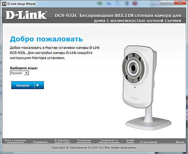 Первым делом камера подключается к роутеру сетевым кабелем. Далее с прилагаемого диска запускается программа инсталляции.