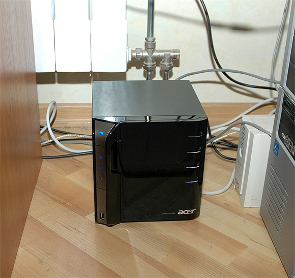 После всех этих экспериментов я пришел к выводу, что мне для дома для семьи все-таки нужен полноценный сервер, а не NAS. В имеющемся NAS не устраивали прежде всего скорость, невозможность поставить некоторые нужные сервисы, добавить новые диски и так далее и тому подобное. А так как рынок домашних серверов я во время написания статей поизучал, то пришел к выводу, что оптимальный и реально недорогой вариант - это Acer Aspire easyStore H340. У нас его пока, насколько я понял, купить невозможно, но благодаря любезности одного хорошего человека этот сервер ко мне приехал из Штатов, где с терабайтом на борту он стоил менее $400. (Да, они там живут в шоколаде, это давно известно.)