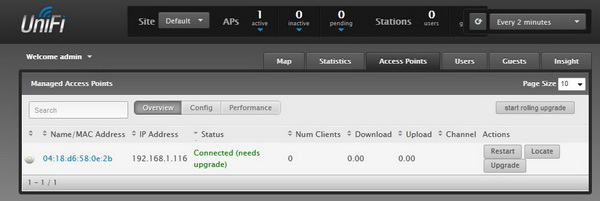 Подключение и настройка точки доступа производятся с помощью программы UniFi Controller, которая скачивается с сайта разработчика.