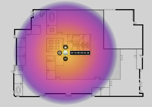 В систему можно загрузить план дома или офиса и там расставить имеющиеся точки доступа: если при этом задать масштаб, то программа покажет примерные зоны покрытия.
