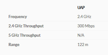 Среди ее продуктов есть точки доступа под названием UniFi. Они предназначены для использования в помещениях, и там предлагается четыре модели: от недорогой UniFi UAP, работающей в диапазоне 2,4 ГГц на скоростях до 300 Мб/c до двухдиапазонной UniFi UAP-AC, работающей на скоростях 450-1300 Мб/с.