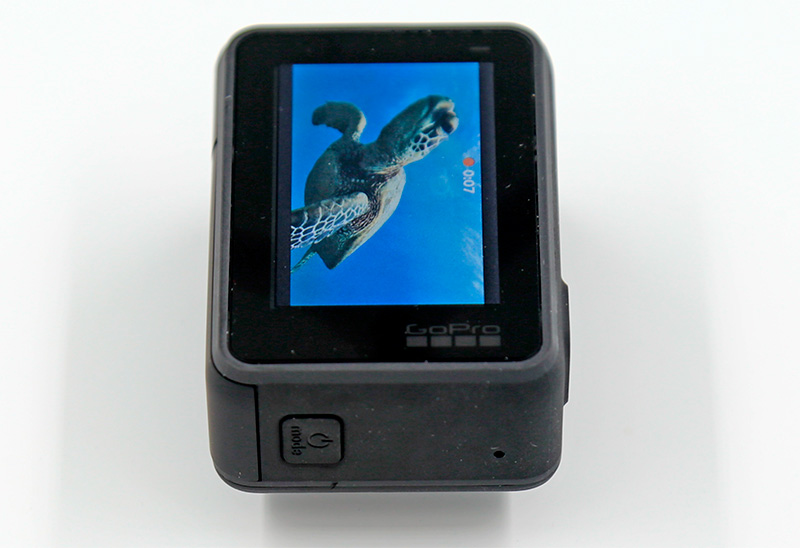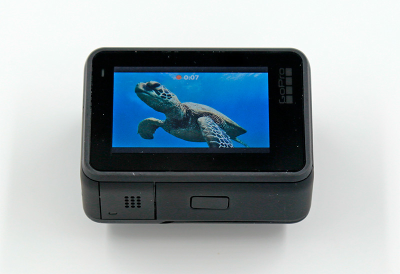На задней части камеры размещен двухдюймовый дисплей. Слева от него также есть светодиод, загорающийся красным в момент съемки.