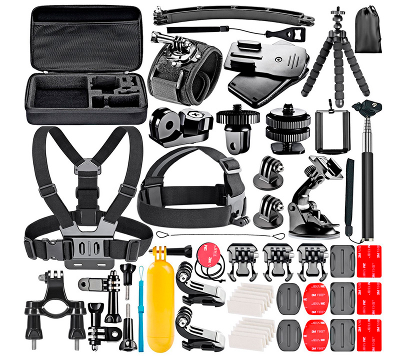 В комплекте: камера, крепежная рамка, кабель USB-C, крепежный винт, аккумулятор, крепежная пряжка, плоское клеящееся крепление, изогнутое клеящееся крепление.