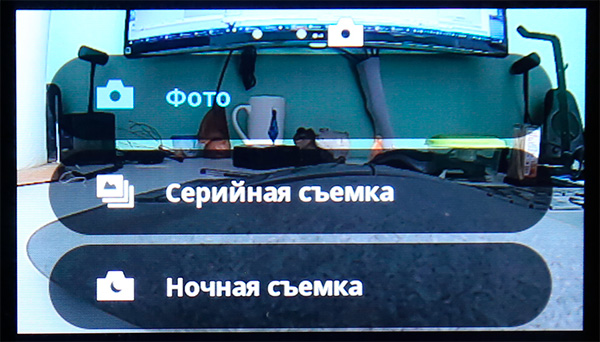 Фото, видео, таймлапс. Тут также доступен режим прямой трансляции в Facebook, Youtube и другие сервисы, причем кнопка эта в ряду режимов почти не видна (она почти скрыта за экраном), так что мне пришлось рыться в документации, чтобы понять, где это вообще.