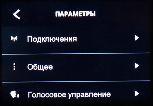 Сверху показаны различные данные, пиктограммы ниже: голосовое управление, звуковые сигналы камеры, QuikCapture (одной кнопкой камера включается и начинает съемку), блокировка настроек.