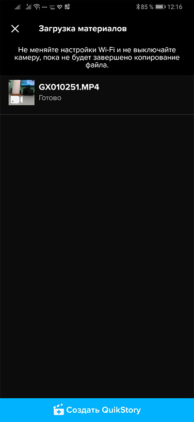 Можно загружать отснятые материалы и создавать ролики QuikStory.