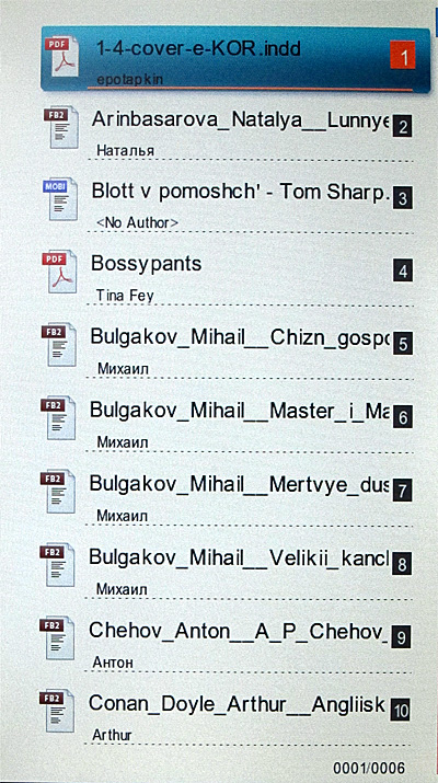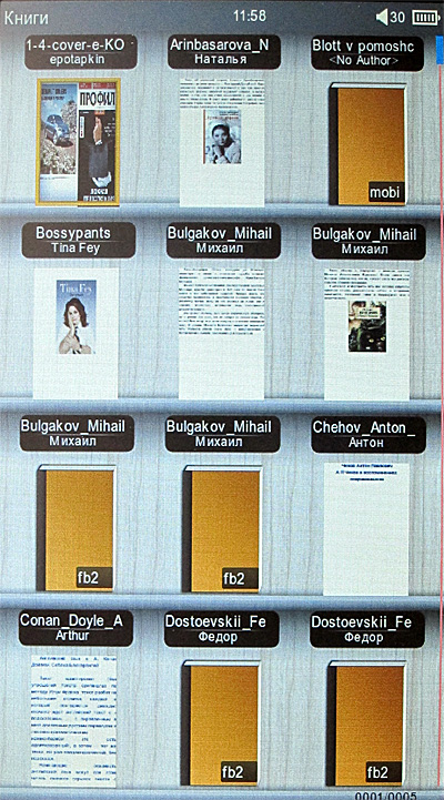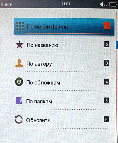 Выглядит впечатляюще, однако практика показала, что если с именами файлов и папками все понятно и все в порядке, то сортировка по названиям и авторам сильно зависит и от форматов книг, и от того, насколько правильно там заполнены теги (впрочем, оно и понятно, иначе откуда ридеру брать информацию по названию и автору?).