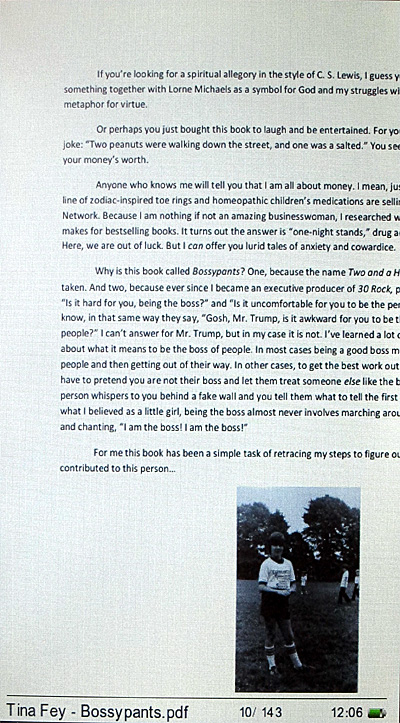 Качество изображения у ридера вполне хорошее. Минусы светящегося TFT-экрана компенсируются его же плюсами - более контрастное изображение, значительно меньшие требования к окружающему освещению.