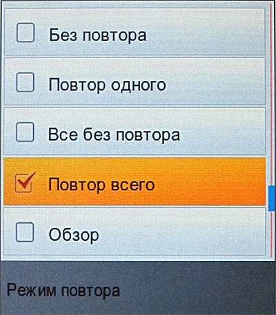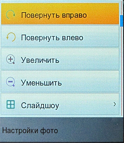 Кнопка "Меню" выдает следующие варианты.