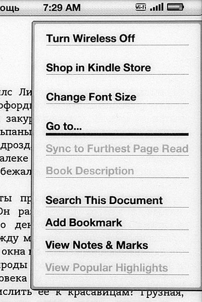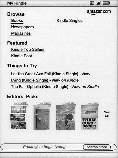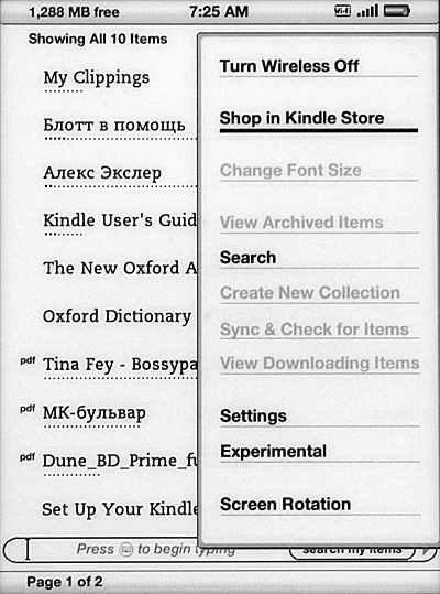 Shop in Kindle Store - зайти в онлайновый магазин Kindle, чтобы приобрести какие-нибудь издания.