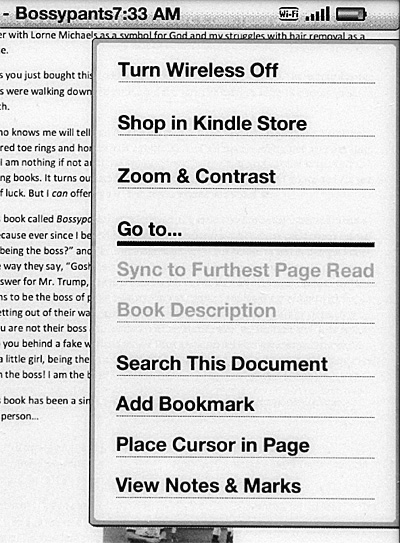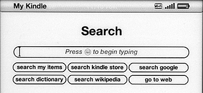Search - поиск. Причем поиск продвинутый: можно искать в загруженных изданиях, в магазине Kindle, в "Гугле", словарях, "Википедии". А что, раз Интернет есть - значит, нужно использовать, правильно?