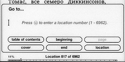 Go to... - переход на выбранную позицию в тексте. Возможности довольно широкие: переход по оглавлению, на начало, на обложку, конец книги, страницу, произвольную позицию.