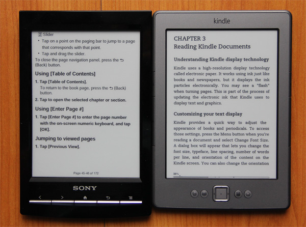 И в этом очень легко убедиться - вот вам Sony PRS-T1 и новый Kindle. Экраны одинаковые.