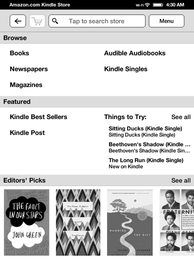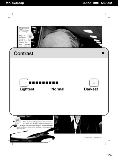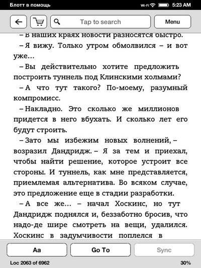 От Amazon Kindle ридер отличается довольно незначительно, хотя наличие сенсорного экрана делает управление заметно более удобным. Если не рассматривать покупку книг в магазине Kindle Store, что для наших пользователей не слишком актуально, ридер подходит для обычного чтения, хотя под его формат MOBI книжки нужно будет предварительно конвертировать - например, отличной и очень удобной программой Calibre.