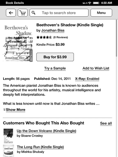 Что мы тут видим? В два раза больше памяти, чем у Kindle, есть аудио. Кстати, существует еще версия Amazon Kindle Touch 3G.