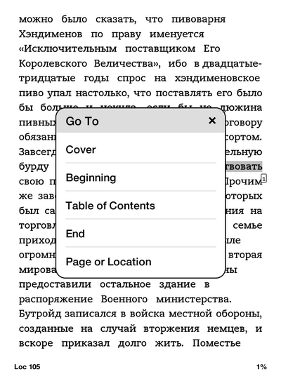 Go to - переход на обложку, начало текста, в содержание, в конец текста или на конкретную страницу.