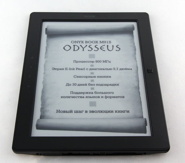Однако компания Onyx International не стояла на месте, и они разработали и выпустили новую модельку под названием Odysseus, которая интересна прежде всего своими размерами - дисплей у нее почти десятидюймовый (9,7"), что довольно редко встречается у электронных ридеров. Между тем большие экраны на самом деле достаточно востребованы. Во-первых, на таких экранах уже можно читать всякую документацию и периодику в PDF-формате (на шестидюймовых экранах такие файлы выглядят слишком мелкими). Во-вторых, люди с не очень хорошим зрением любят большие экраны за то, что на них можно сделать крупный шрифт и читать с комфортом.