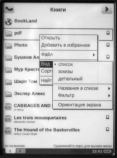 Вызвать традиционное меню Pocketbook клавишами теперь нельзя вообще. И это ужасно! На экране светится подсказка "Удерживайте перо для вызова меню" - и мы с Бубликом часами сжимали перо в потных ладошках, но никакое меню так и не появилось.