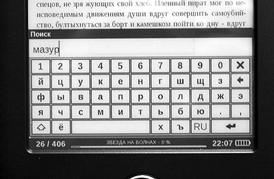 Я пока не вижу никакого смысла в том, чтобы за счет сенсорной пленки приобретать жуткие блики и смотреть на себя как в зеркала при чтении, потому что минусы от этой пленки явно перевешивают плюсы. Убрать сенсорную пленку, вернуть нормальный джойстик - о, это была бы хорошая машинка. Кстати, она есть - называется Pocketbook 301. А вот данная же модель явно пока идет в серии proof of concept, причем эта концепция если не ошибочна, то, по крайней мере, нуждается в серьезной доработке.