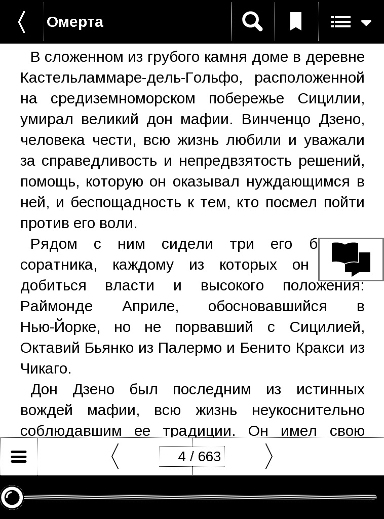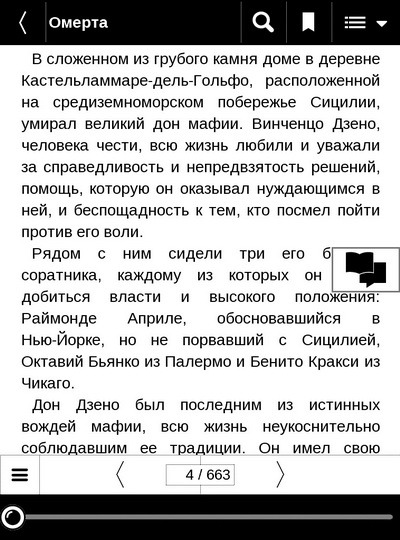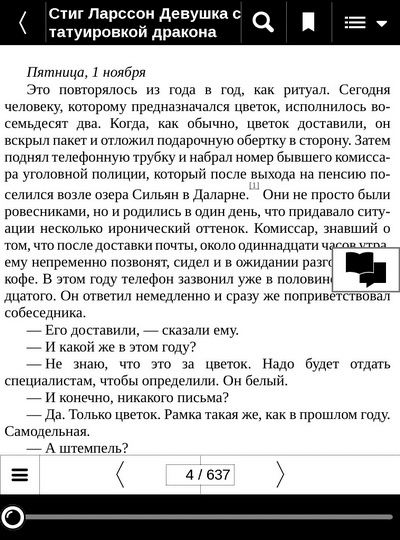 Открываем книгу формата FB2, причем ридер, как и ожидалось, отлично понимает FB2 в ZIP.