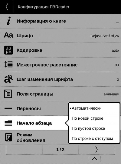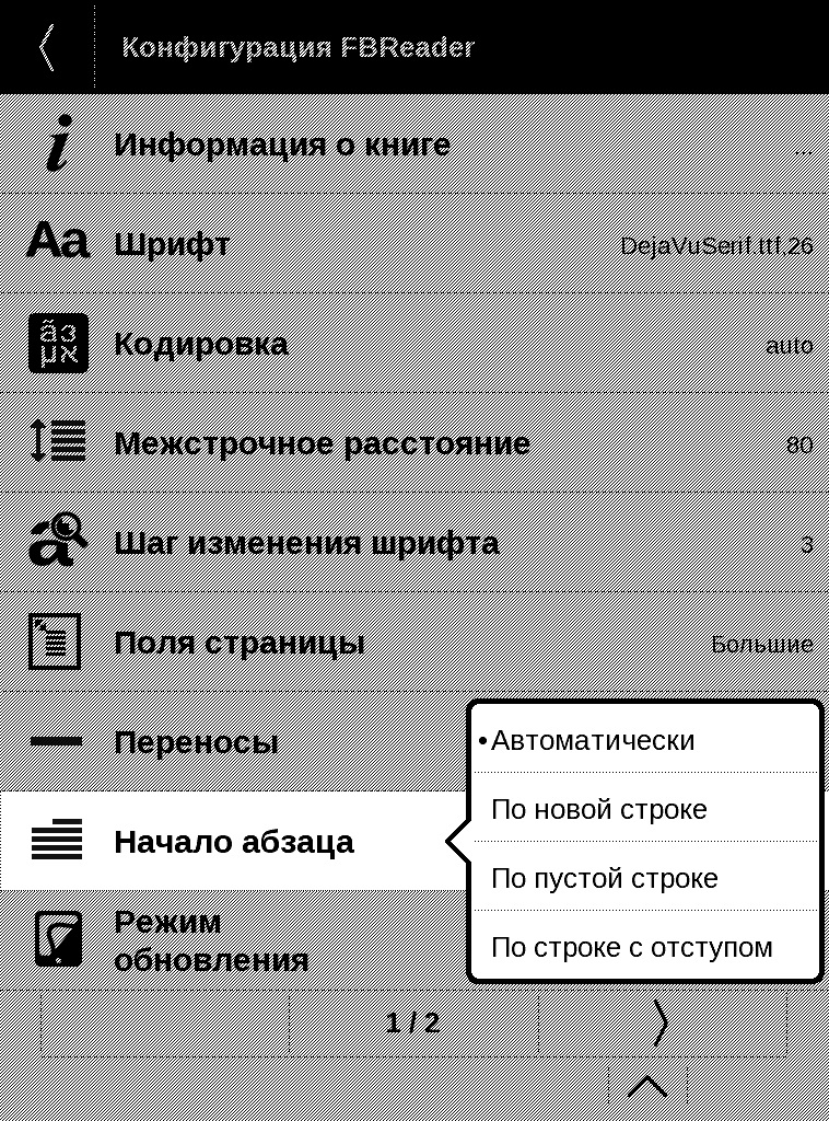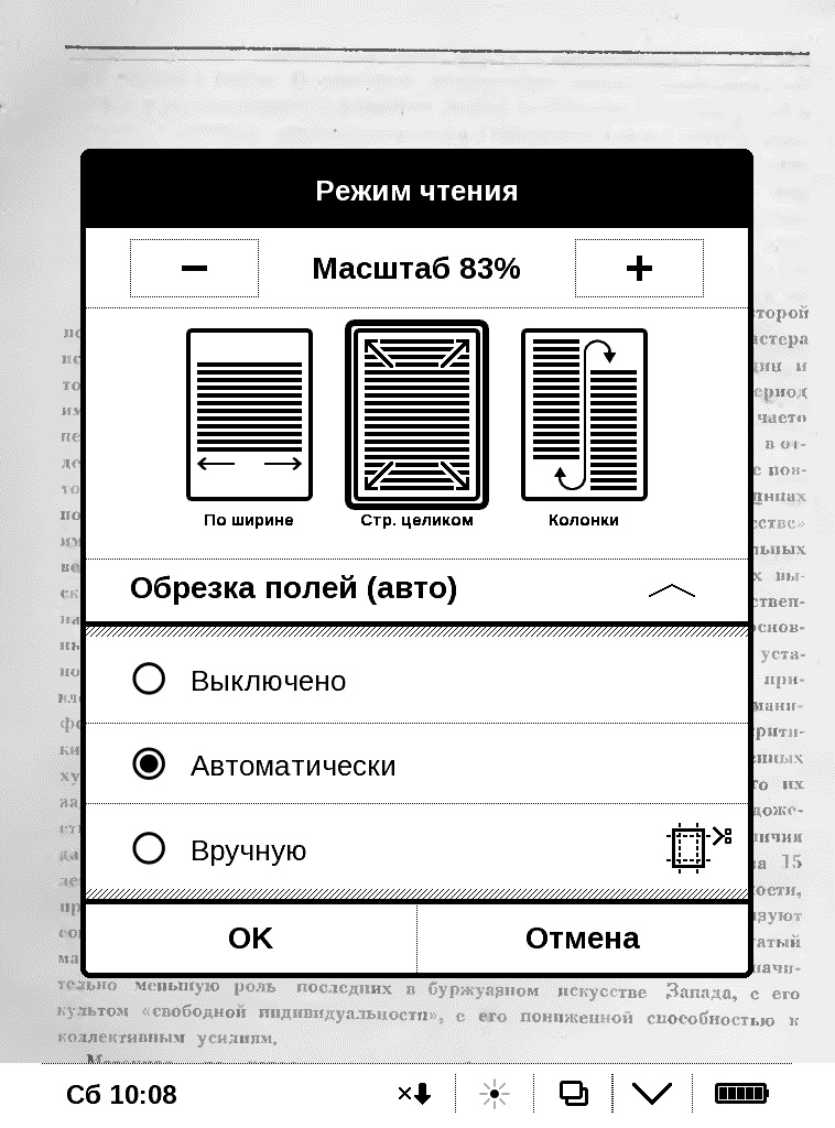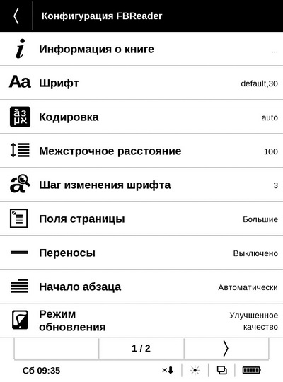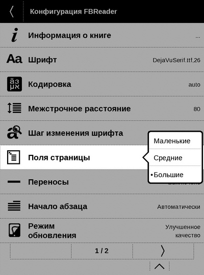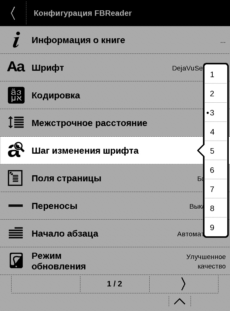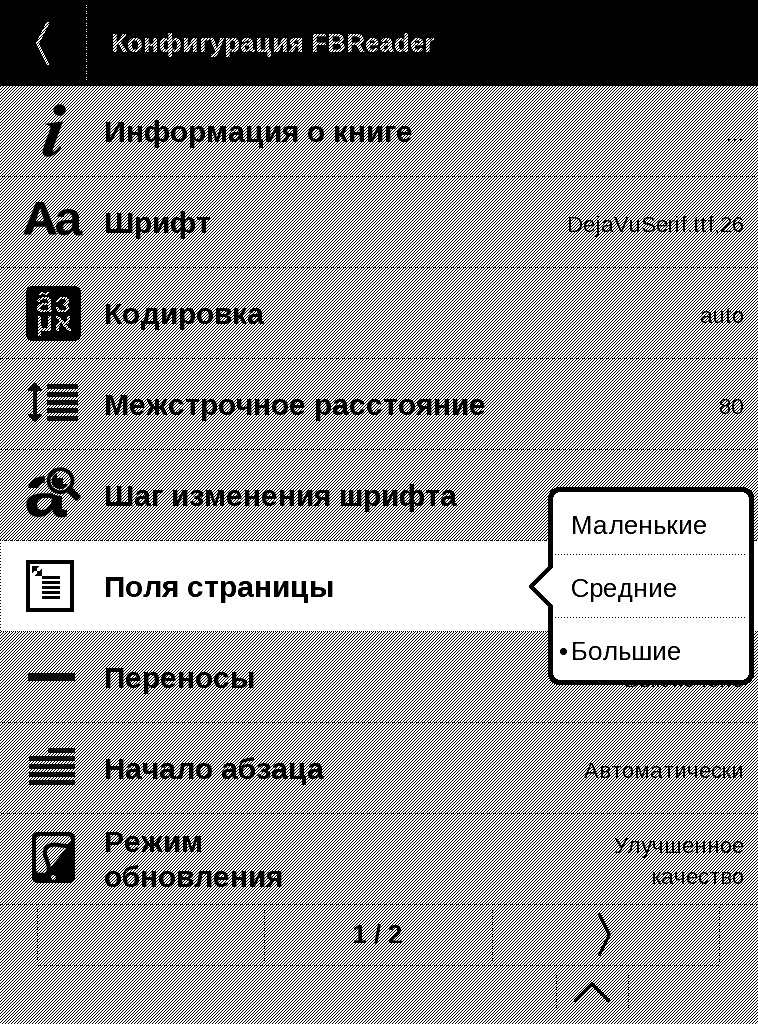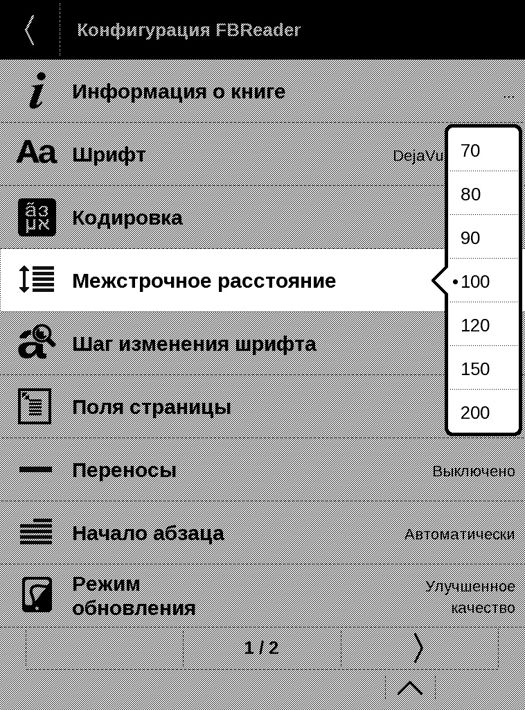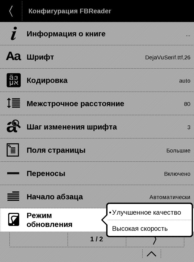 Выбор режима обновления. Если выбирается улучшенное качество, то страница при каждом перелистывании обновляется целиком, что занимает некоторое время. Если выбрана высокая скорость, то полное обновление делается раз в пять перелистываний.