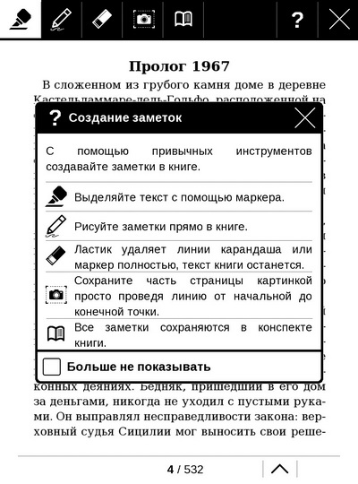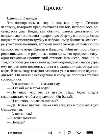 Если окружающего света недостаточно для комфортного чтения, можно включить подсветку. Однако подсветку лучше не использовать, если вокруг совсем темно - это вредно для глаз.