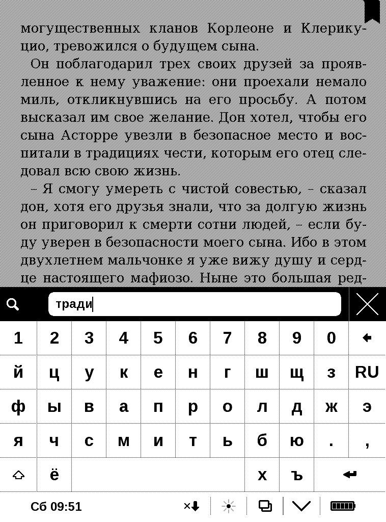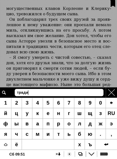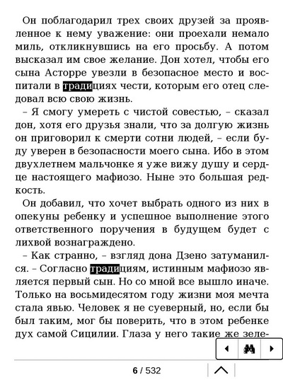 После этого ридер входит в режим навигации по найденным вхождениям поисковой строки.