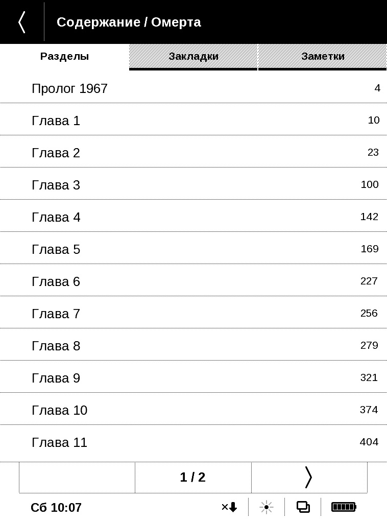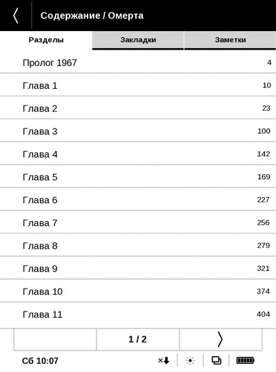 Содержание. Название глав - интерактивное: можно прикоснуться к нужной главе и ридер вам откроет соответствующую страницу.
