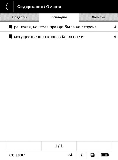 Нижняя строка - удобная навигация по страницам и вызов содержания, закладок, заметок.